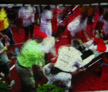 First tests of the film being projected onto the wall: